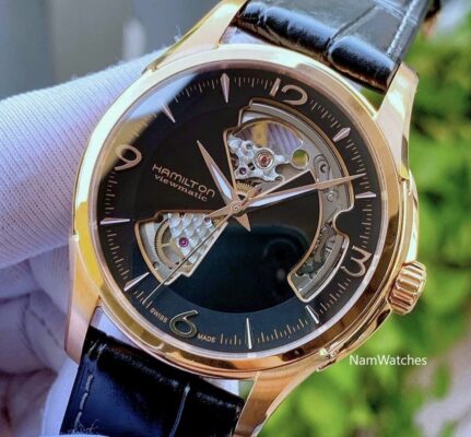 Hamilton Jazzmaster Open Heart Rose Gold Black Leather – H32575735
