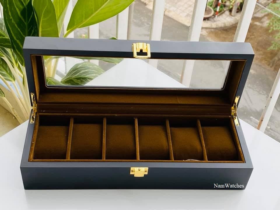 Hộp gỗ đựng đồng hồ với 6 ngăn lót nhung sang trọng